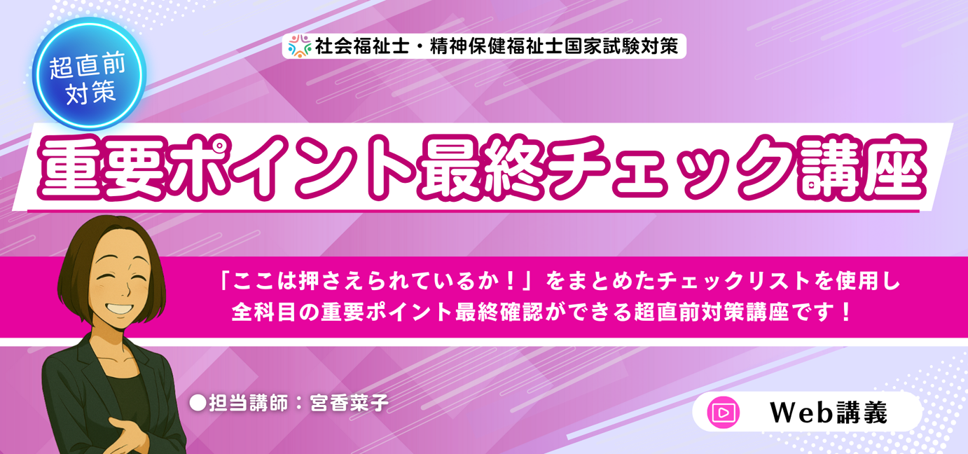 - 2025年度版 社会福祉士・精神保健福祉士「重要ポイント最終チェック講座」販売開始のお知らせ 2025年12月17日